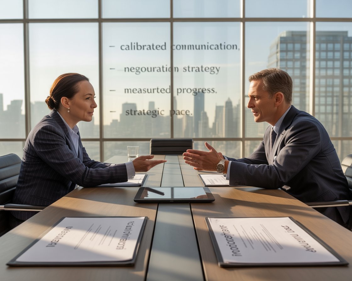 Dialogue is direct and professional, focused on clarity, fair positioning, and efficient progress toward aligned completion.